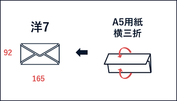 洋7封筒はA5用紙の横三折が入るサイズです。紙幣や商品券、L判写真などを封入することができます。サイズとしては定形郵便物に該当するため、最安で110円で郵送が可能です。その他、日本郵政の「ゆうメール」、佐川急便の「飛脚メール便」などのサービスも利用できます。※厚さや重量等に制限がある場合や、郵便料金が変更される場合がございます。詳細については、各社のホームページをご確認のうえご利用ください。
