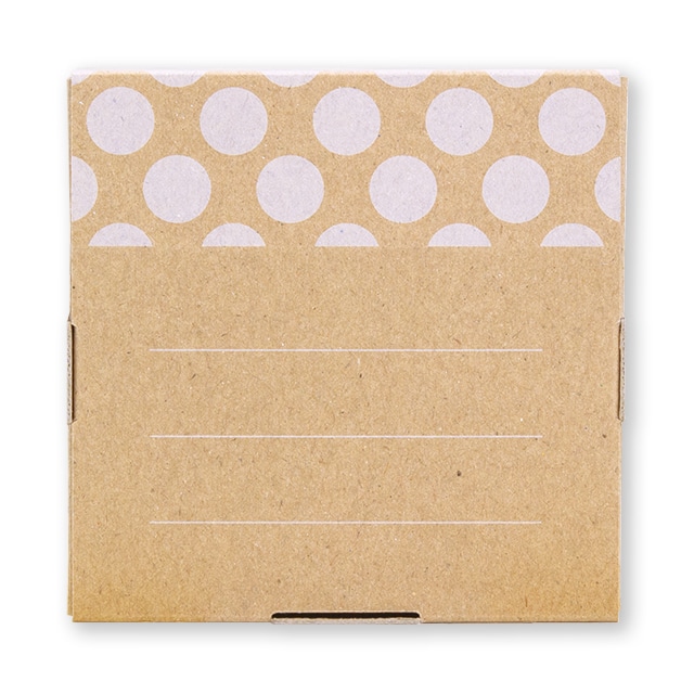 クラフトの薄い段ボール素材を使った箱です。持ち歩きにも便利なサイズで、memorokuカードが2セット(62枚)保存できます。