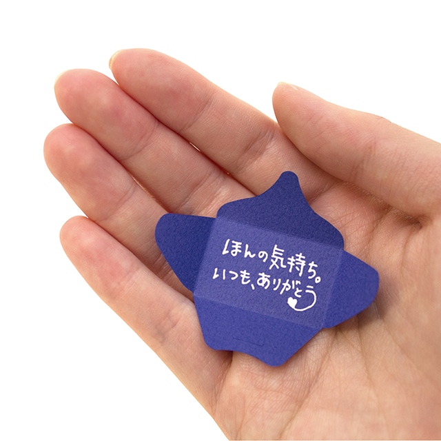 手のひらにちょこんとのる、ちいさなメッセージカードです。両面シールが付属しているのでギフトのメッセージを添えるのに便利です。