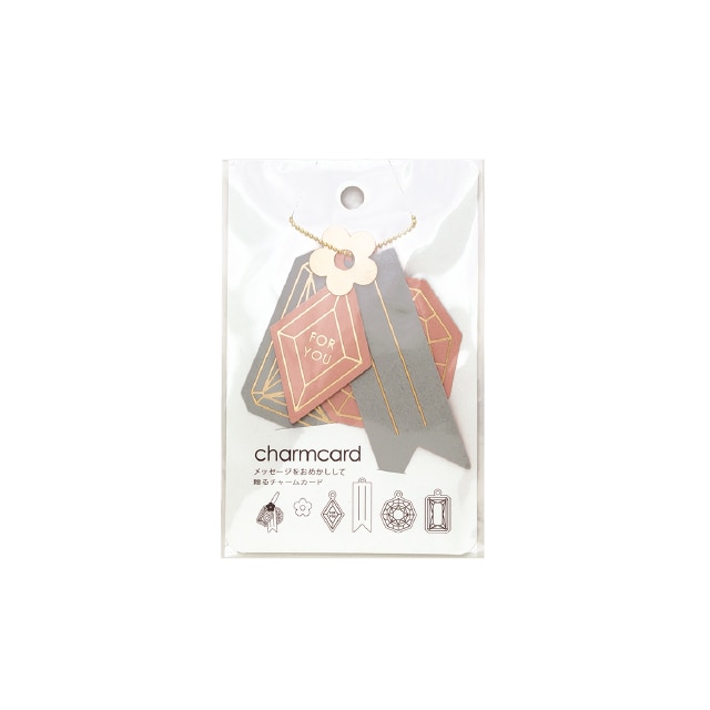 メッセージをおめかしして贈るチャームカード。洋服に合わせてアクセサリーを選ぶ様に、プレゼントや相手に合わせてメッセージカードを贈る。チャームカードはアクセサリーのようなデザインでメッセージを彩ります。