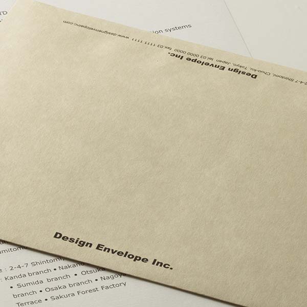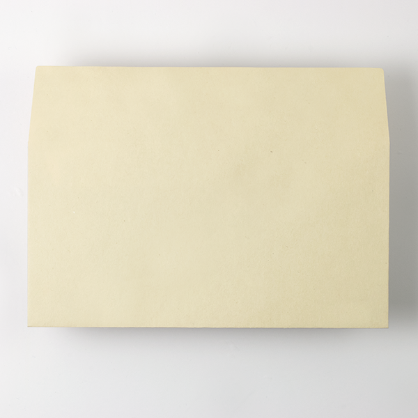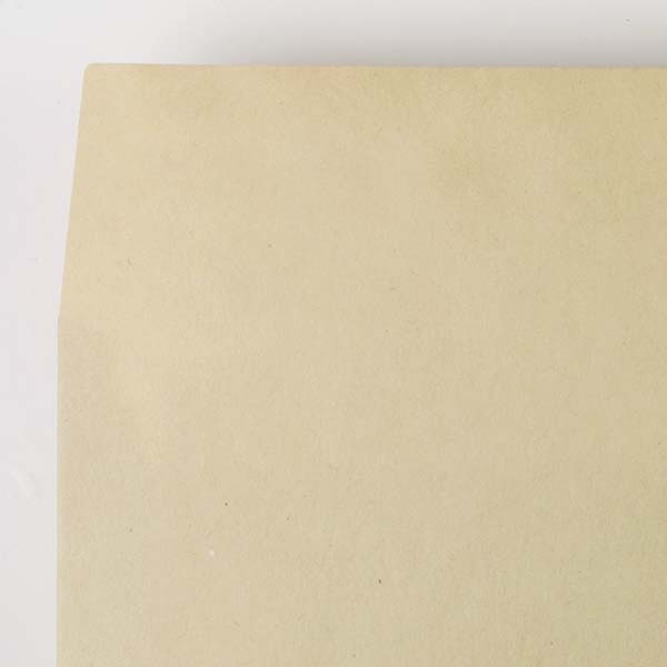 ざっくりとしたラフな風合いと、クラフト紙やダンボールのような素朴な色が特徴の封筒です。低密度でありながらしっかりとした手触りを持った嵩高紙です。A4三つ折りが横に入るサイズです。